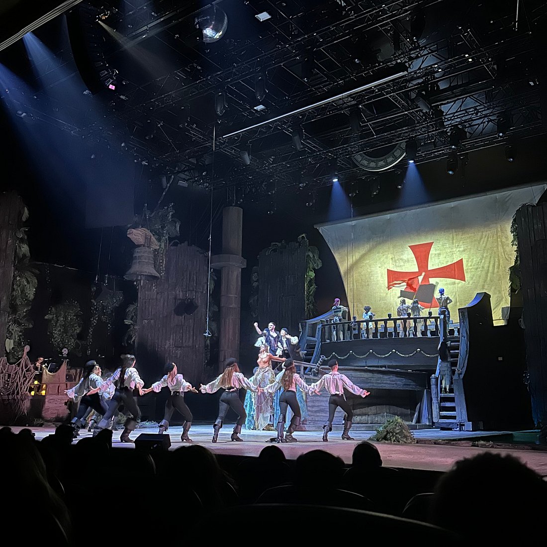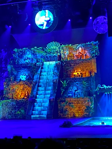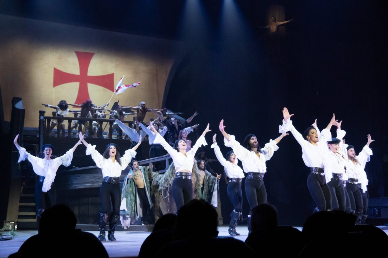 Contenidos audiovisuales para proyección de velas de barco, mapping piramide y pantalla LED circular para cada momento del espectáculo.